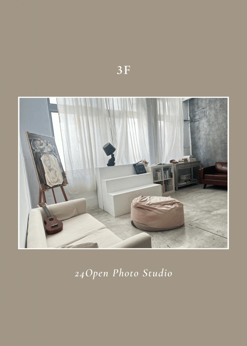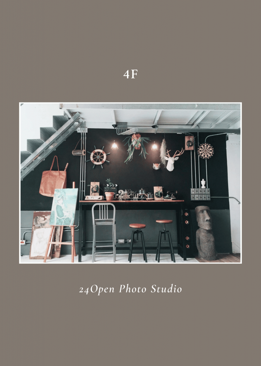 擁有180坪挑高3.8米空間,集合美式、韓風及多元主題實景與無縫牆,滿足各類拍攝需求,創意隨心發揮