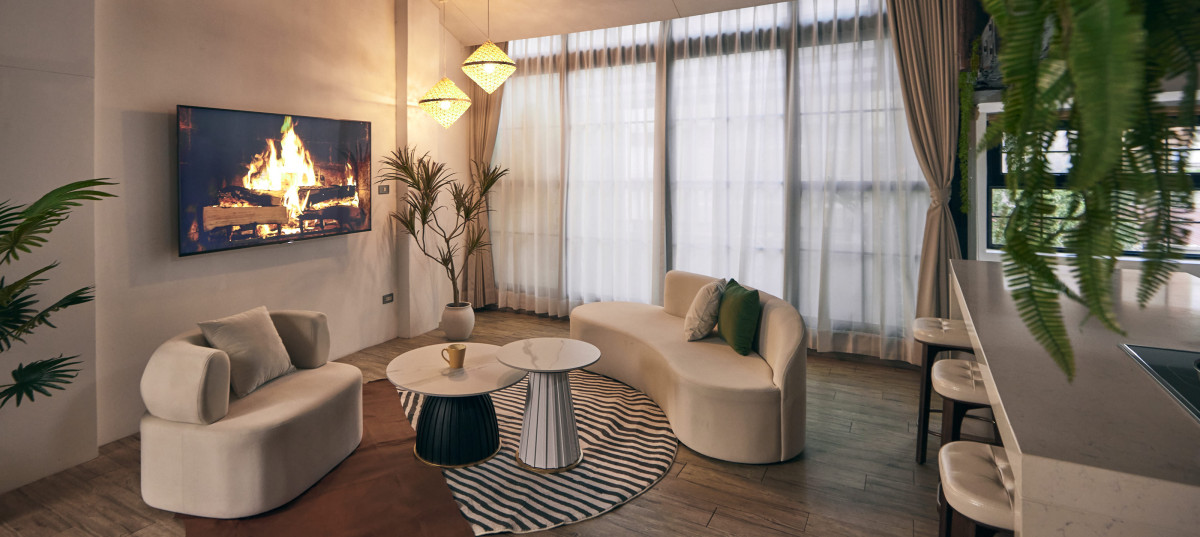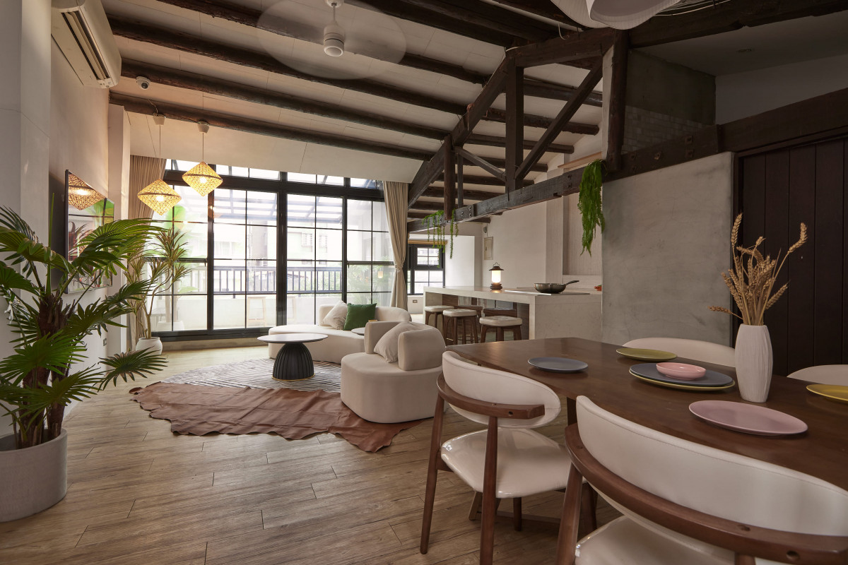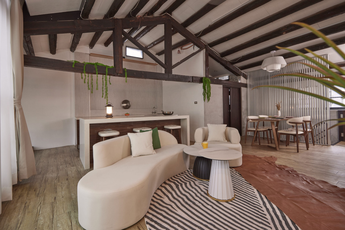 講堂 、 梳化間 、 自然光 、 家景.客廳 、 綠色植物 、 水泥牆 、 陽台.頂樓
