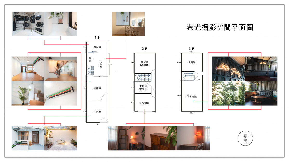 提供 Wi-Fi 網路 、 有背景紙 、 有音響設備 、 提供棚燈租借 、 有學生方案 、 有長期配合方案