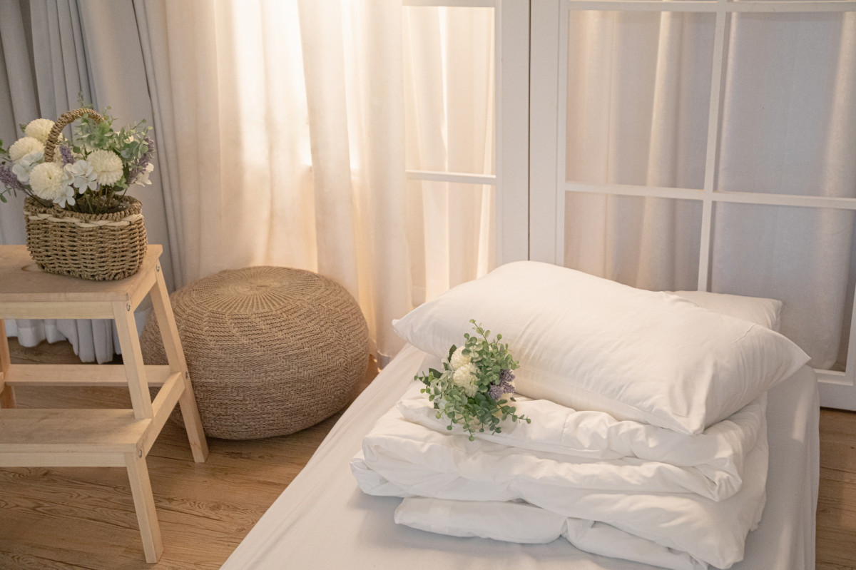 磚牆 、 壁爐 、 乾燥花 、 自然光 、 床景 、 單色.撞色