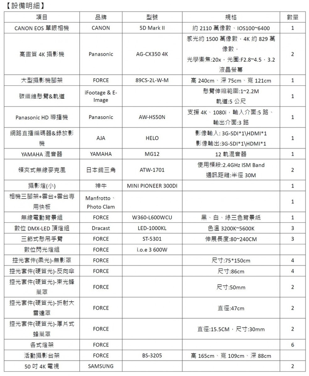 有學生方案 、 提供 Wi-Fi 網路 、 提供棚燈租借 、 有背景紙