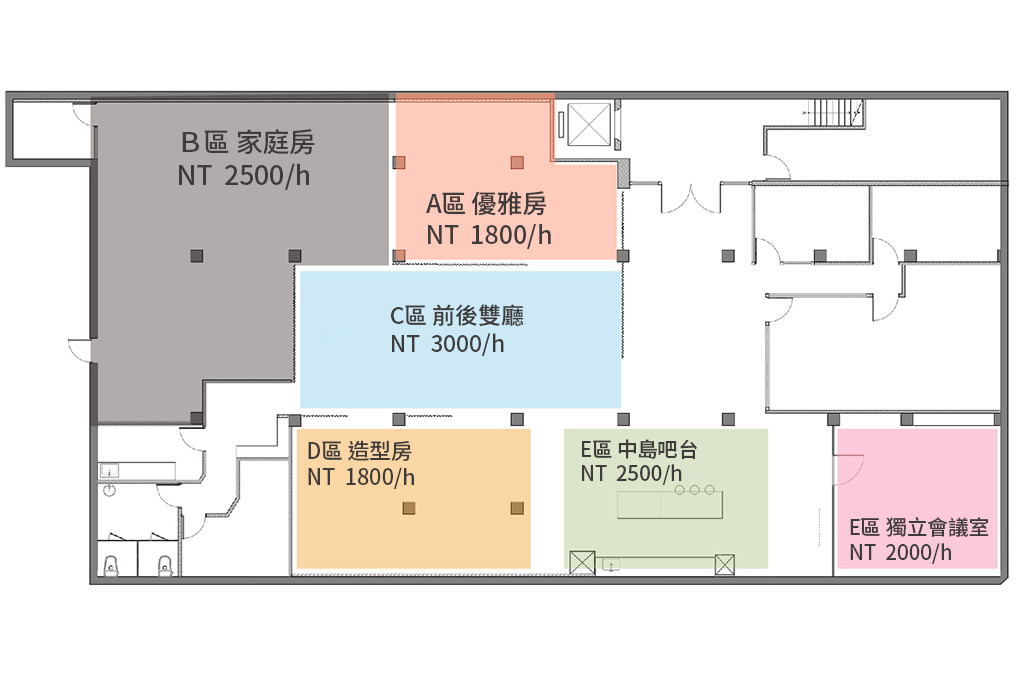 總佔地80坪,擁有多款情境實境空間、及大型梳畫間,搭配專業空間規劃,滿足多種拍攝需求