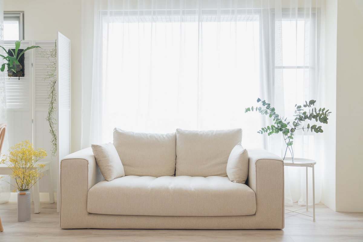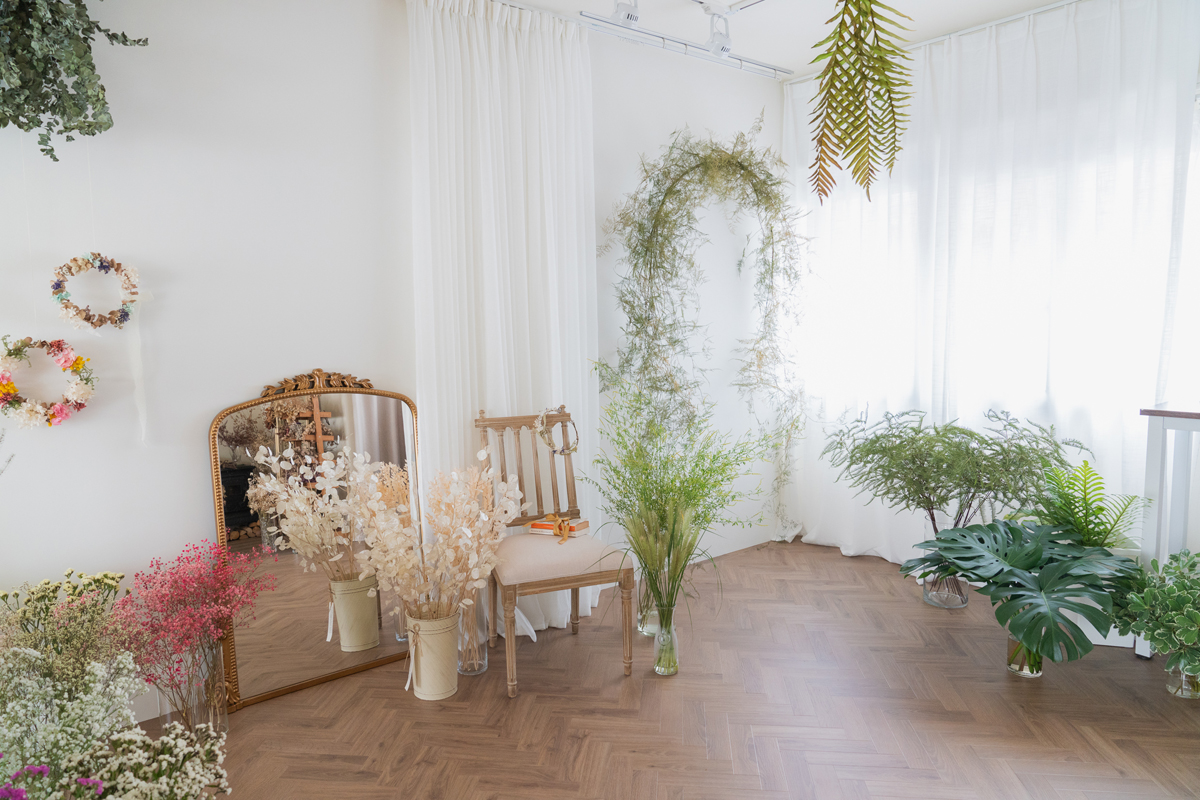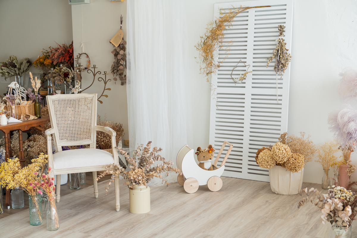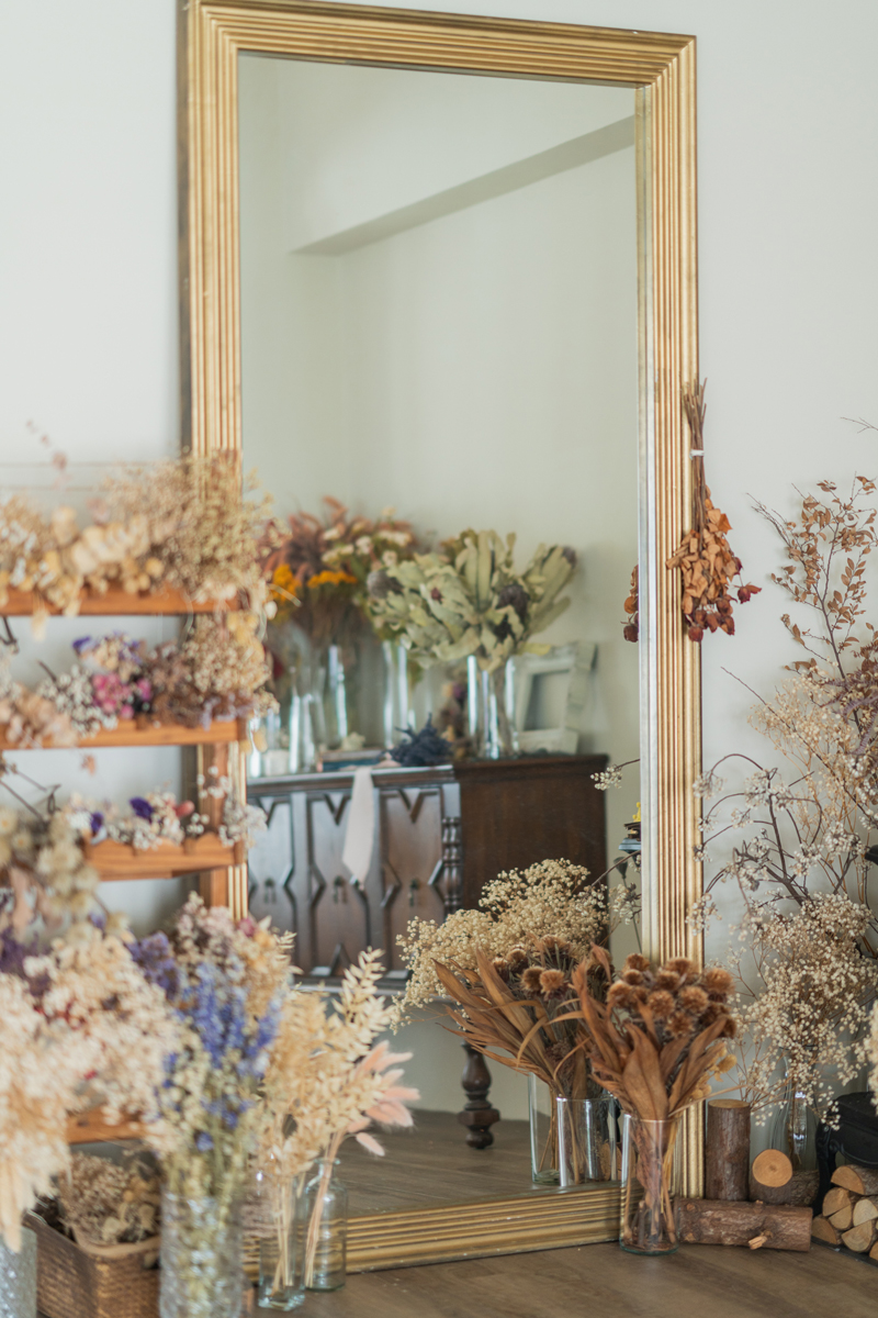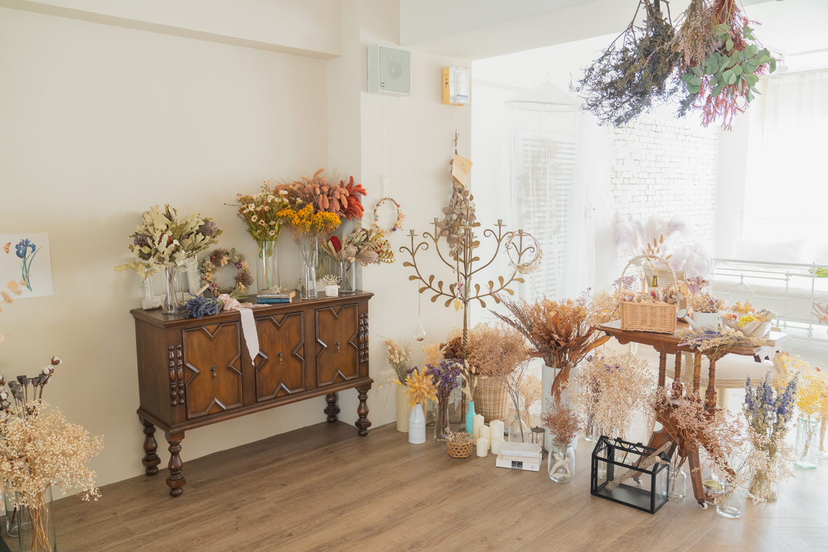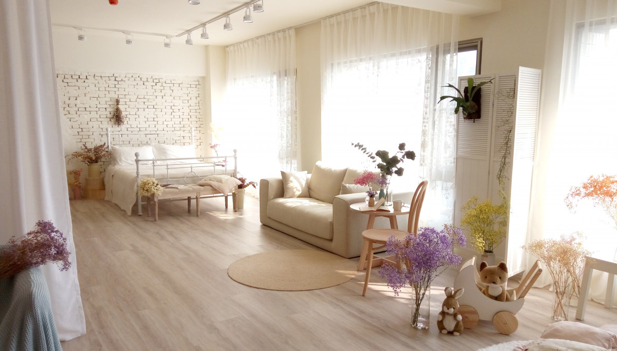 自然光 、 乾燥花 、 家景.客廳 、 綠色植物 、 落地鏡 、 單色.撞色 、 梳化間 、 床景