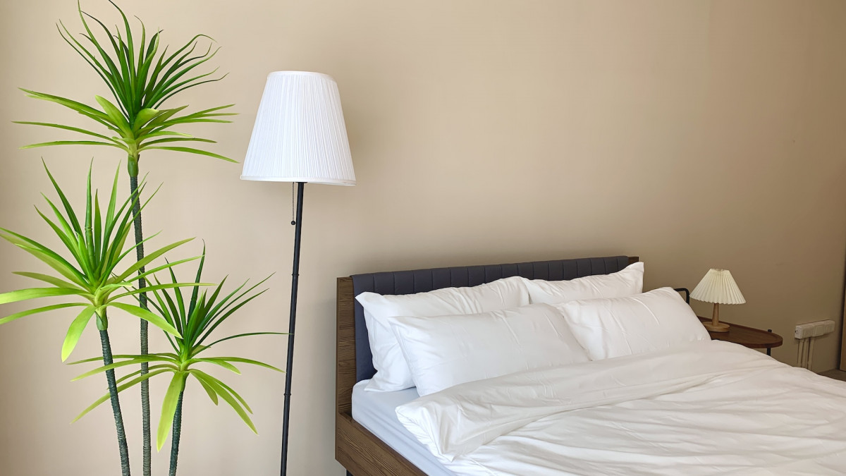 自然光 、 陽台.頂樓 、 床景 、 家景.客廳 、 綠色植物 、 單色.撞色