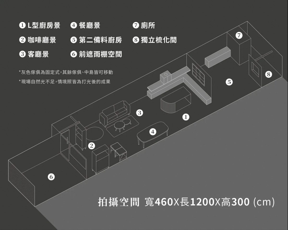 實景攝影棚 、 適合烹飪拍攝 、 適合時裝拍攝