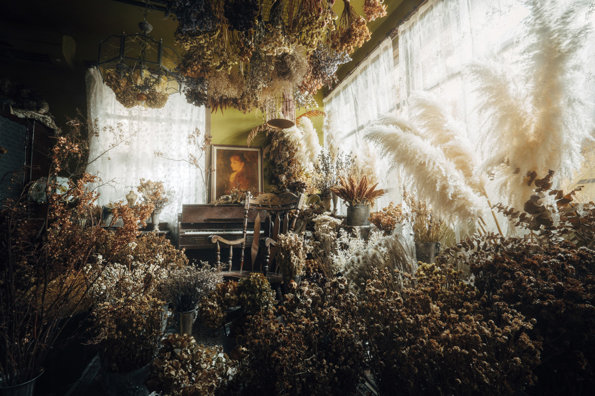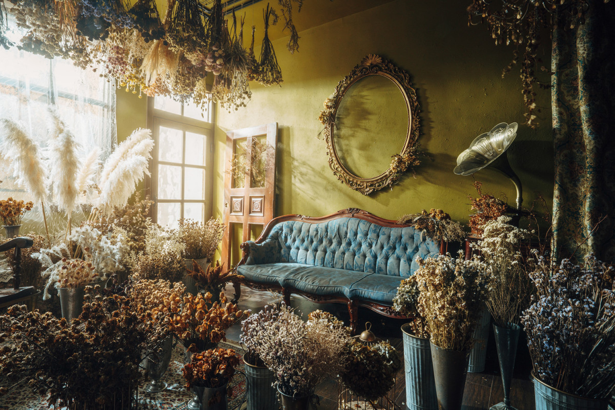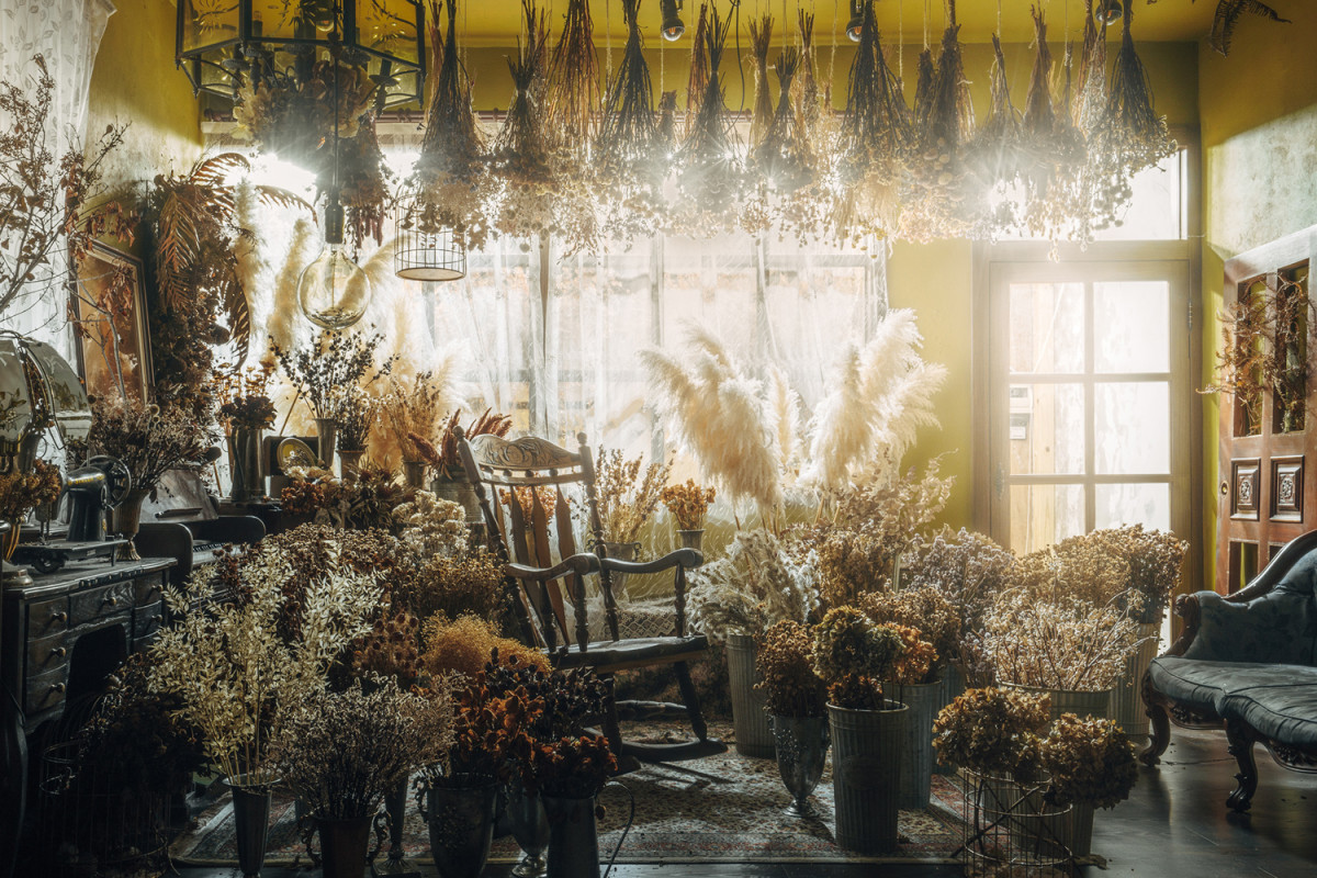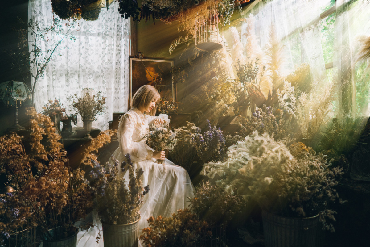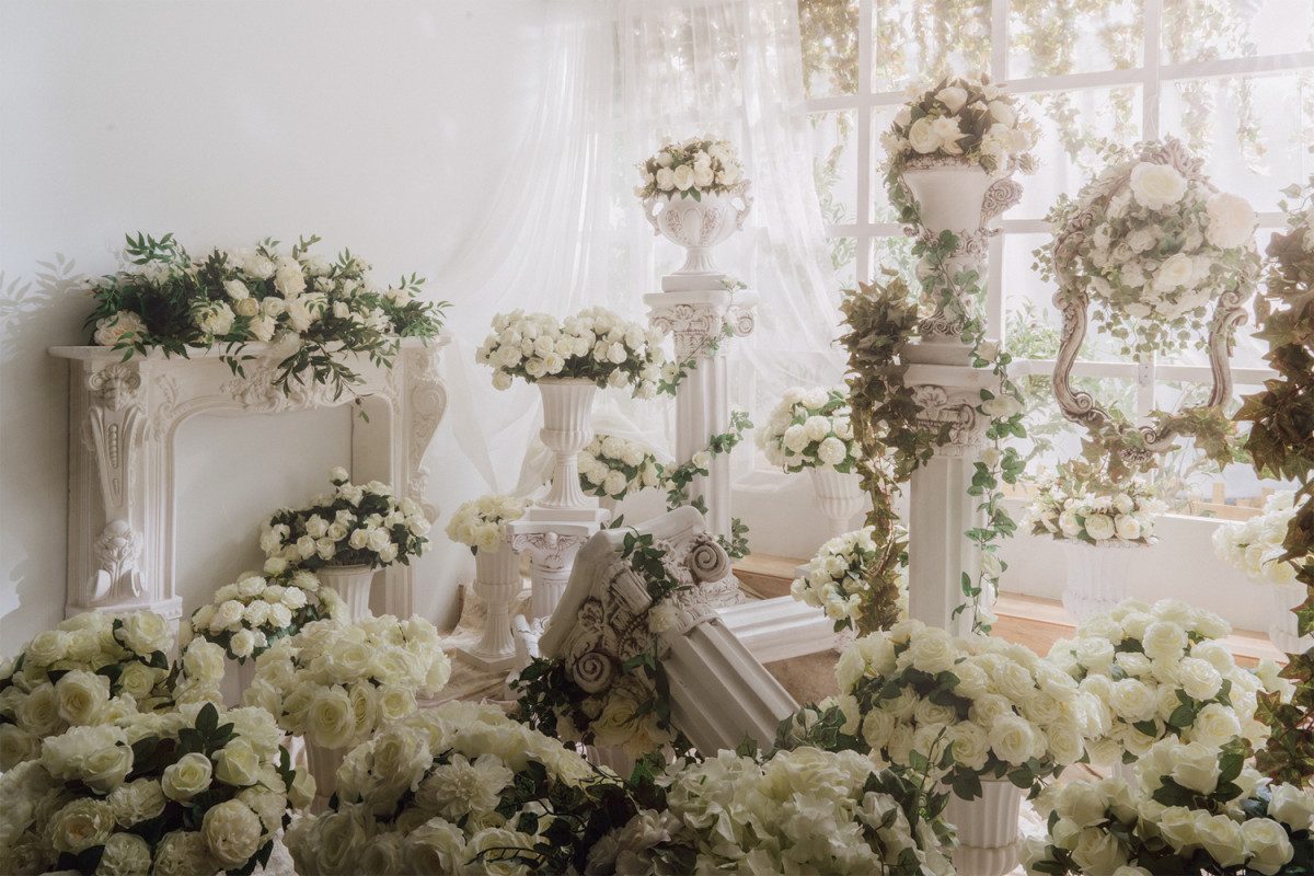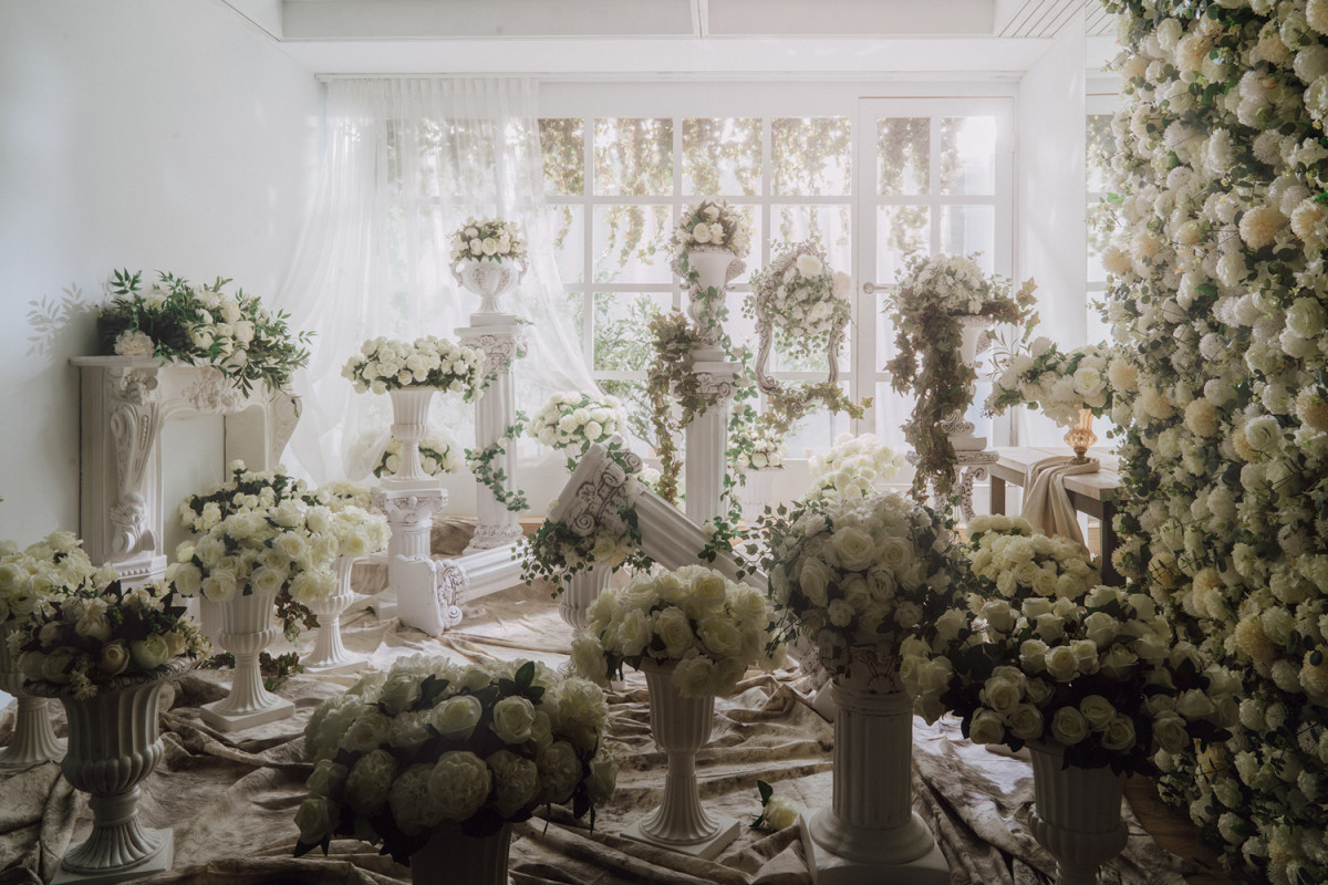 自然光 、 乾燥花 、 床景 、 家景.客廳 、 單色.撞色 、 綠色植物 、 花牆 、 拱門