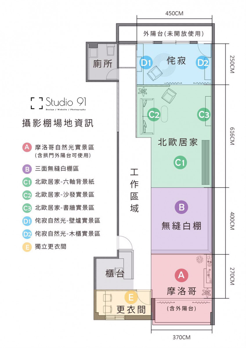 提供 Wi-Fi 網路 、 有音響設備 、 有背景紙 、 提供棚燈租借